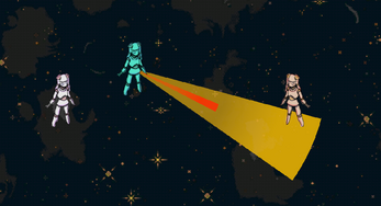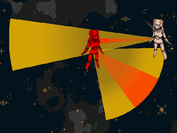 When attacking, a yellow cone with red inside will appear, indicating the effective area of the attack. The yellow area indicates a normal hit, and the red area indicates a critical hit. Each attack also has an energy cost, represented by a yellow square, as well as your remaining energy being next to your health.